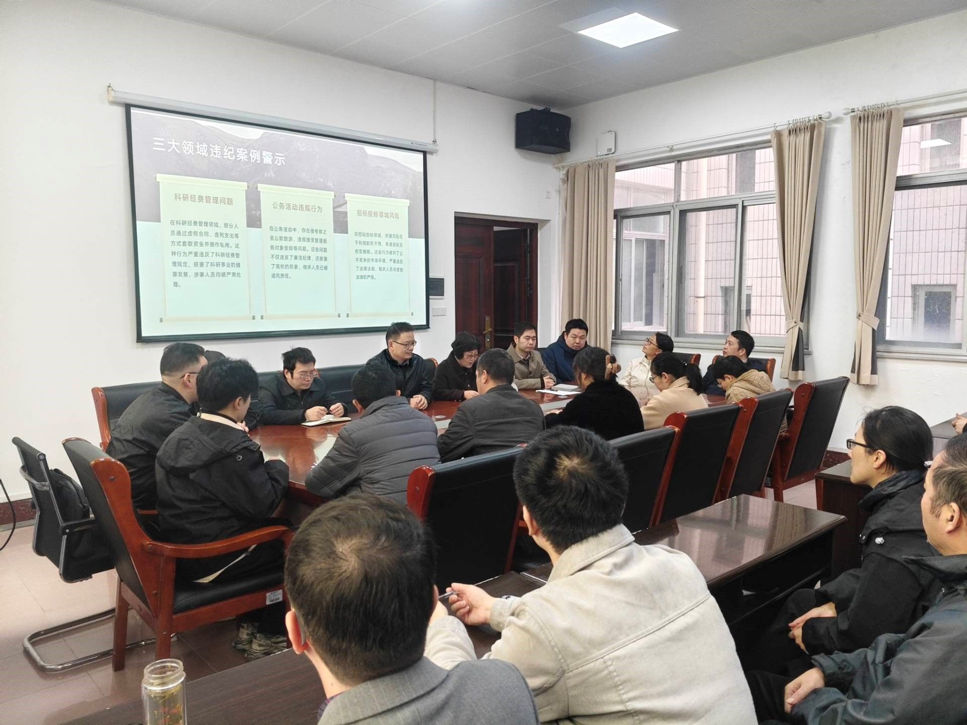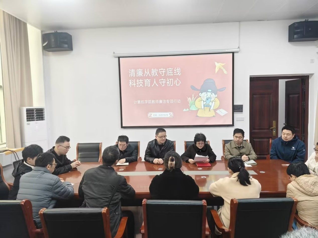 为加强教师廉洁自律、筑牢思想防线,10月10日计算机学院党委书记伍艳泽、纪委委员郭海如等领导召开清廉专项活动,以 “清廉从教守底线・科技育人守初心” 为主题,通过 “以案说纪” 剖析科研经费、公务活动、招标投标三大领域典型案例,强化廉洁教育。